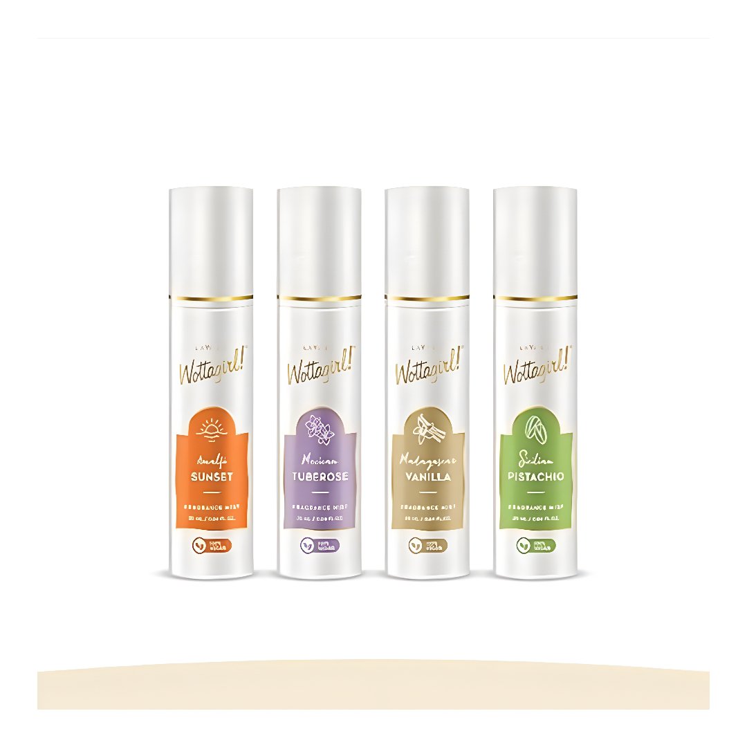 Layer’r Wottagirl Fragrance Mist Combo Pack of 4 (25ml Each) – 100% Vegan – Amalfi Sunset, Sicilian Pistachio, Madagascar Vanilla & Mexican Tuberose – Long-Lasting Fragrance Mist for Women