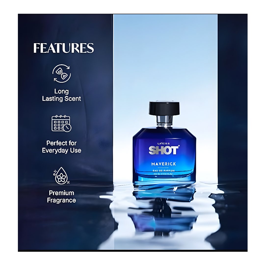 - Luxurious Aquatic Fragrance: Layer’r SHOT MAVERICK EAU DE PARFUM for Men offers a luxurious and invigorating aquatic fragrance, evoking a sense of sophistication and freshness that is perfect for any occasion.
